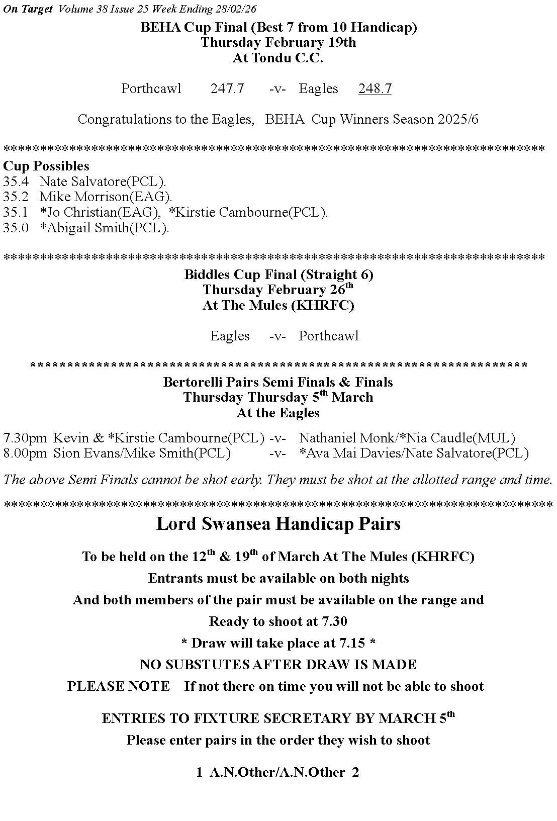 Bridgend & District Air Rifle League