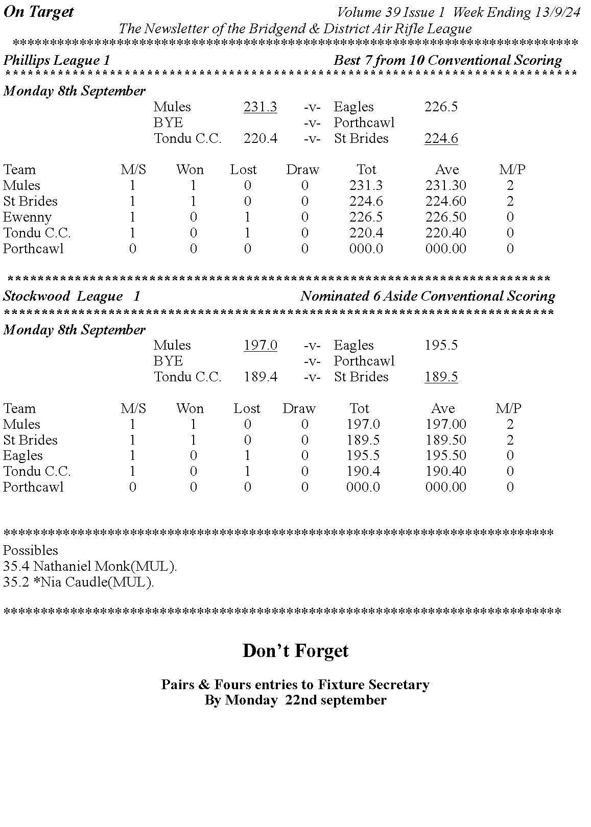 Bridgend & District Air Rifle League > Weekly Newsletter > Newsletters > Volume 39 Issue 1