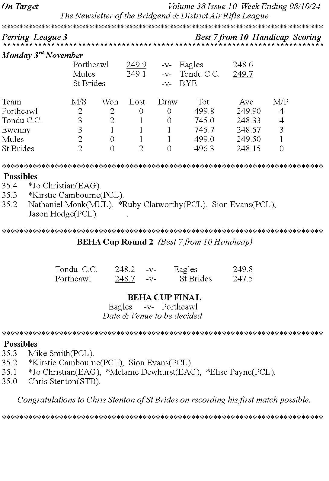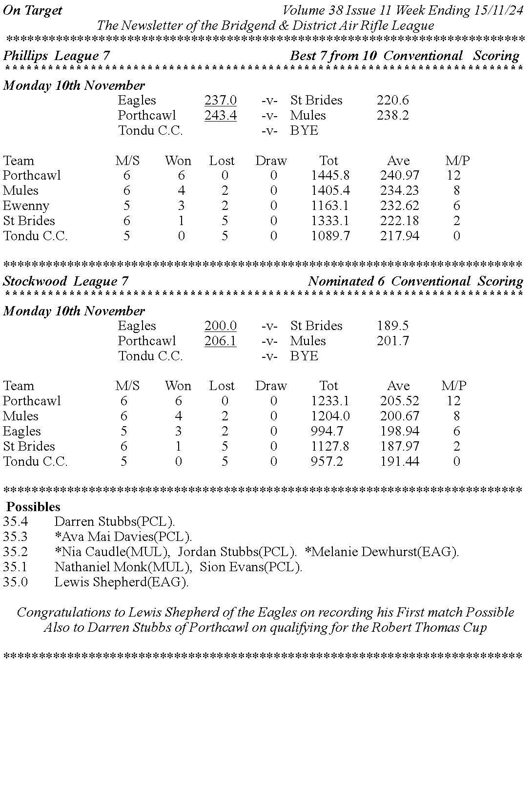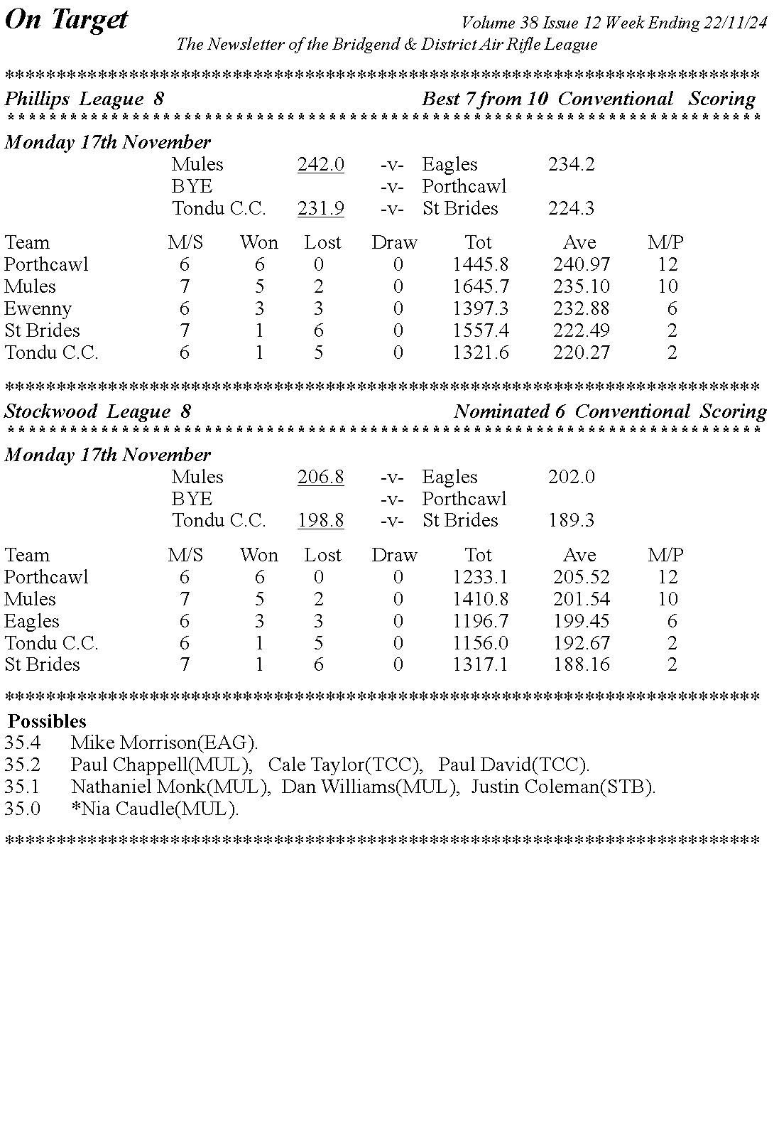 Take a look at our weekley newsletter issued by the Bridgend and District Air Rifle League...